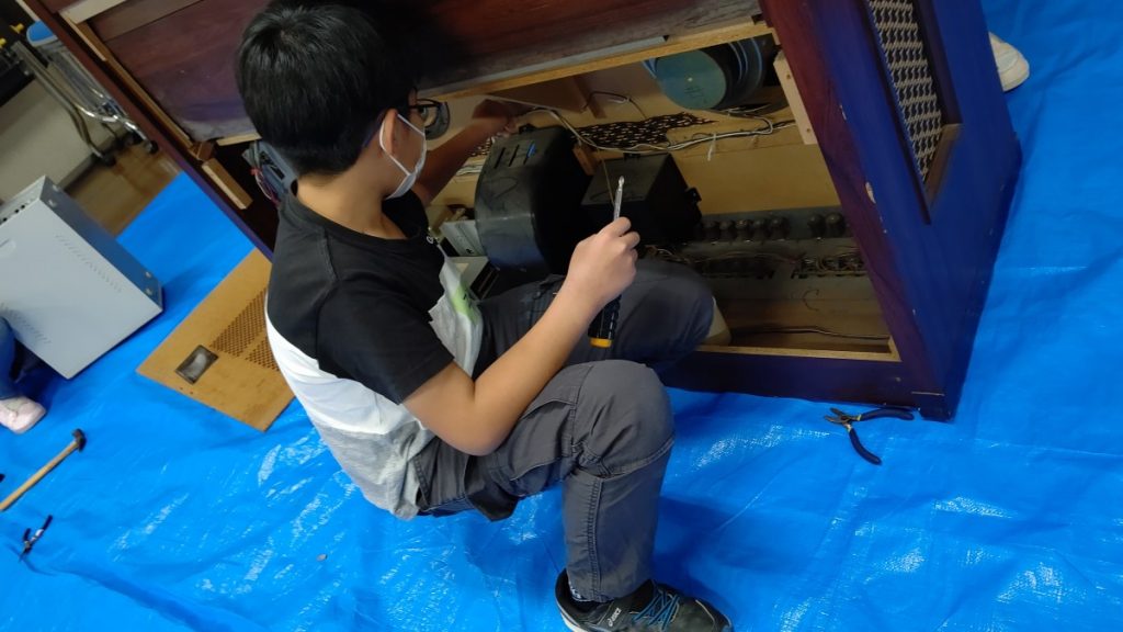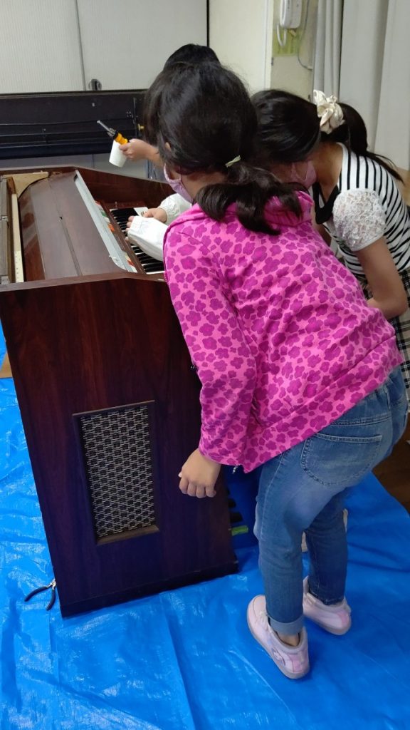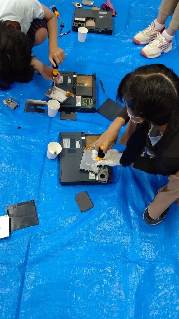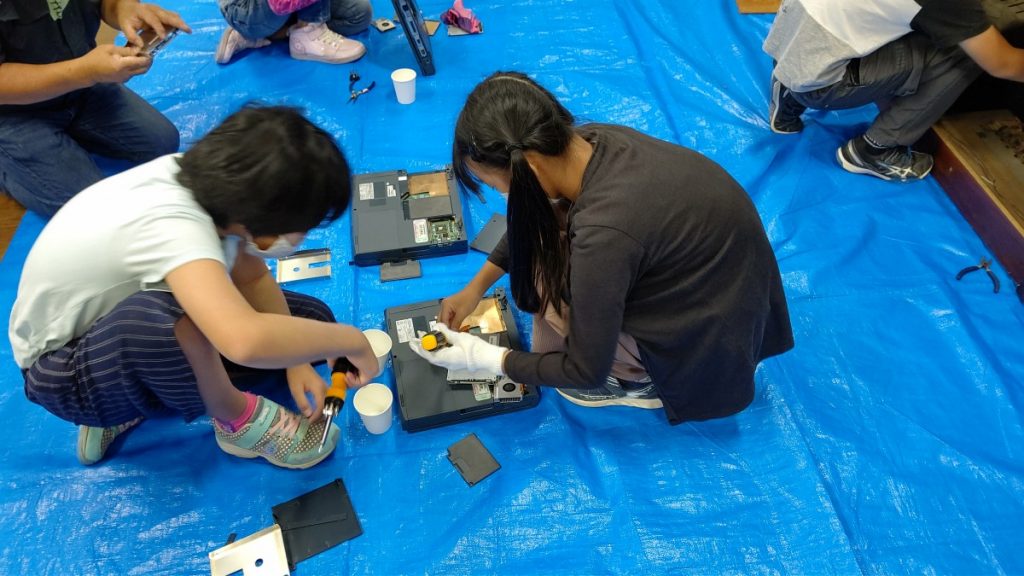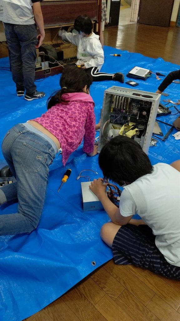 そして、本日のメインワークショップ、故障して音の出なくなった電子ピアノやデスクトップ型パソコンやノートパソコンの分解へと突入しました。