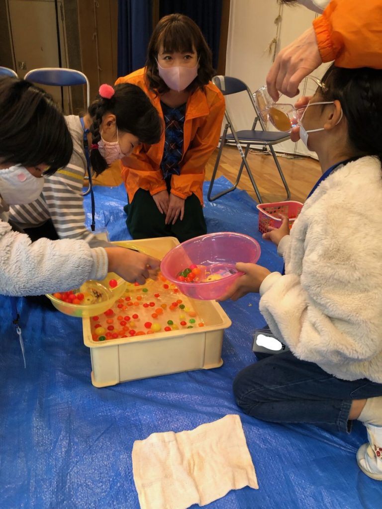 当日、前半は、グループに分かれて、縁日にちなんで、いろんなブースのいろんなことにチャレンジしてもらいました。