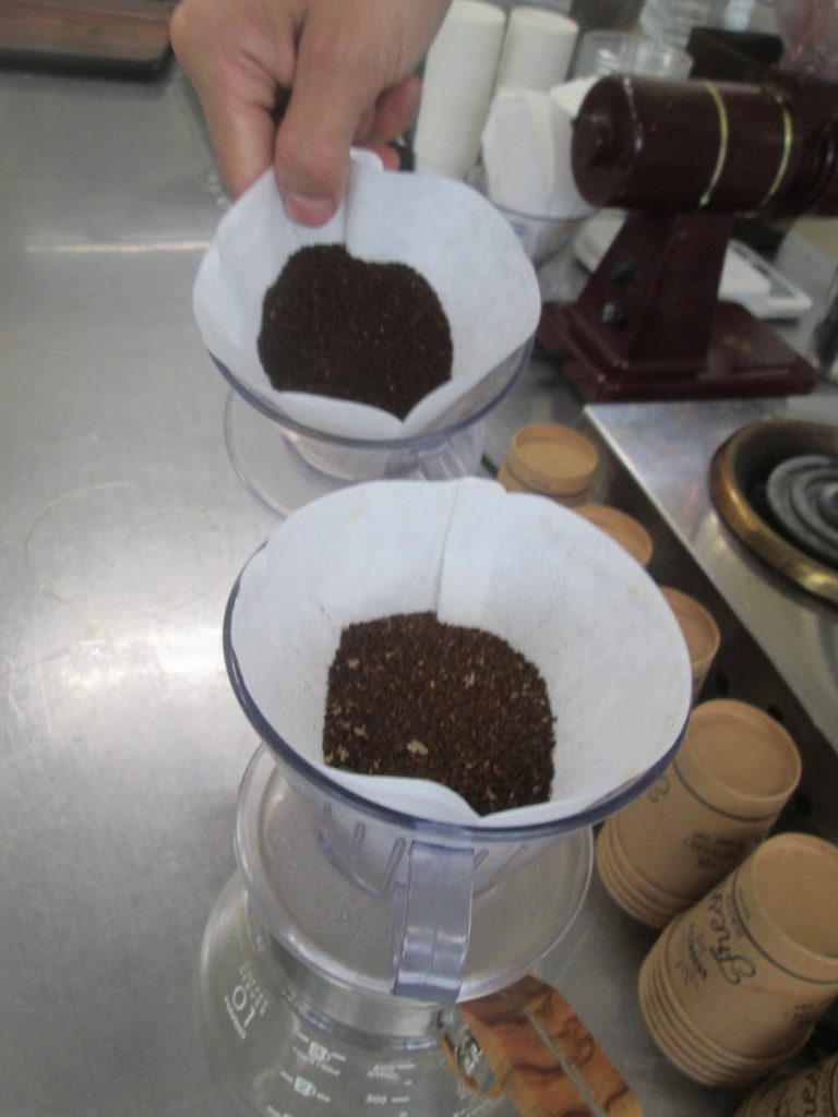 当日は、豆の焙煎の違い、量の違い、入れる速さ、注ぐお湯の温度、などいろいろな違いで、同じ豆でもどんなふうに変化するかという試飲をたくさんさせて頂きました。
