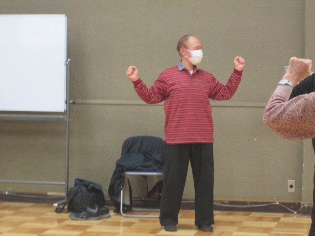 「難しい…」と言いながらも、参加者のみなさんは、一所懸命、先生の動きをマネて、太極拳に挑戦してくれていました。