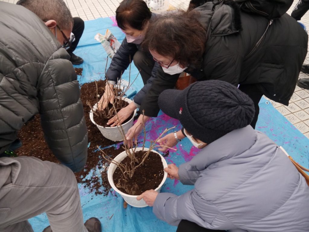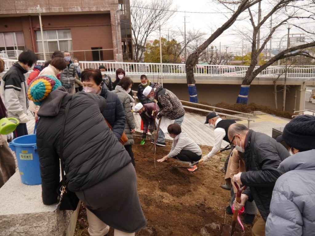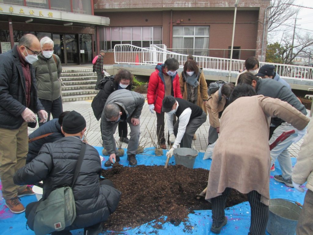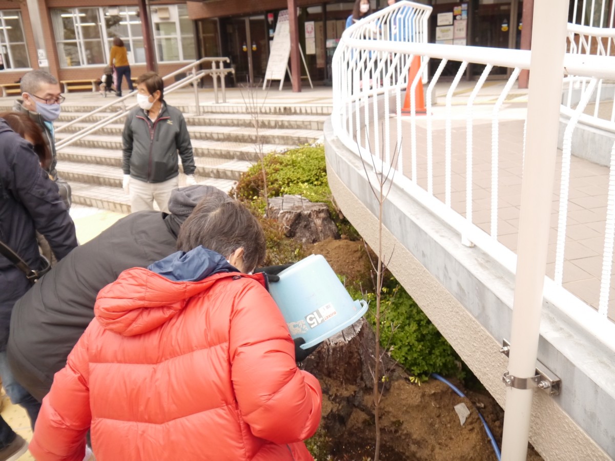 申請が受理され、樹木を頂けることになり、本日、令和3年度の利用者会議に来られていた方々に協力頂いて、植栽作業をみんなで行いました。