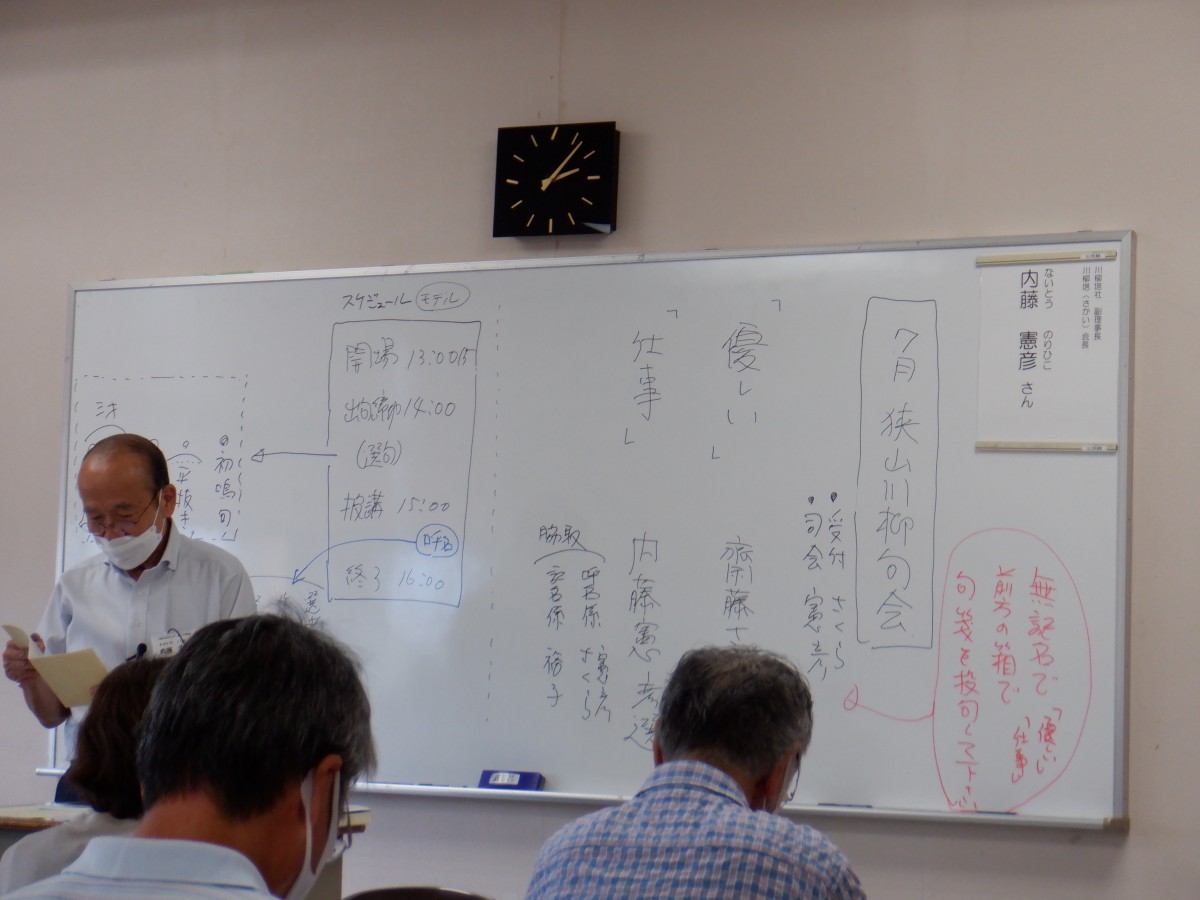 宿題のお題、「優しい」と「仕事」を一人2句づつ句箋に書いてきました。考えてきた川柳の句箋を無記名で箱の中に投句します。その後、選者(今回は内藤先生と助手のさくらさん)が選句します。その後、披講の時間となります。