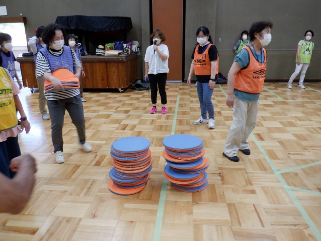 最初にレクリエーションを活用した準備体操をし、座布団合戦で、みんな一緒を楽しみました。