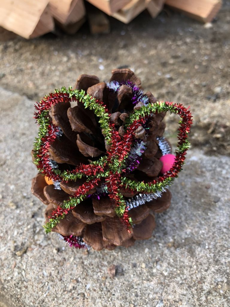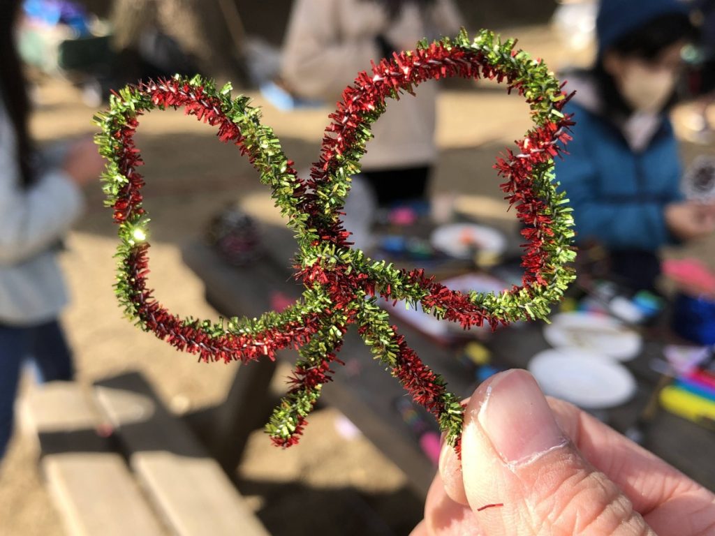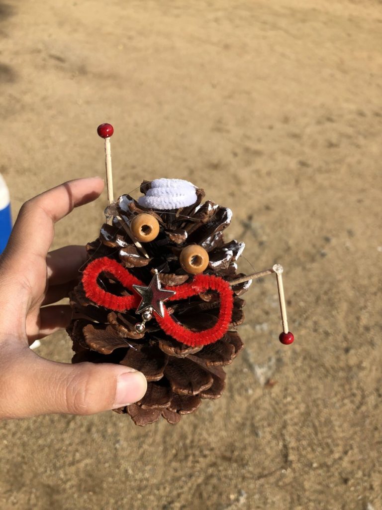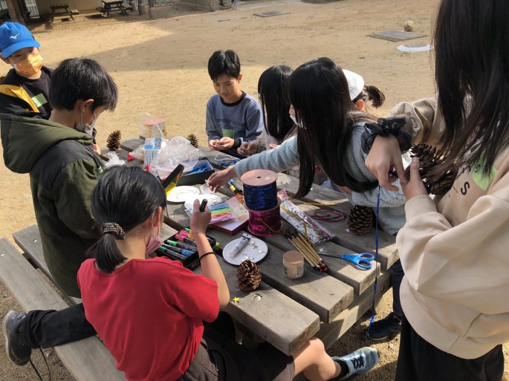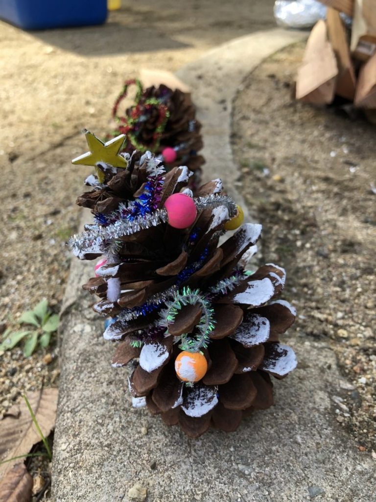 工作は、松ぼっくりを使ったクリスマスツリーづくり