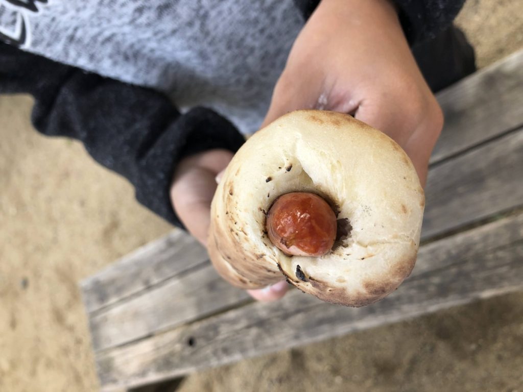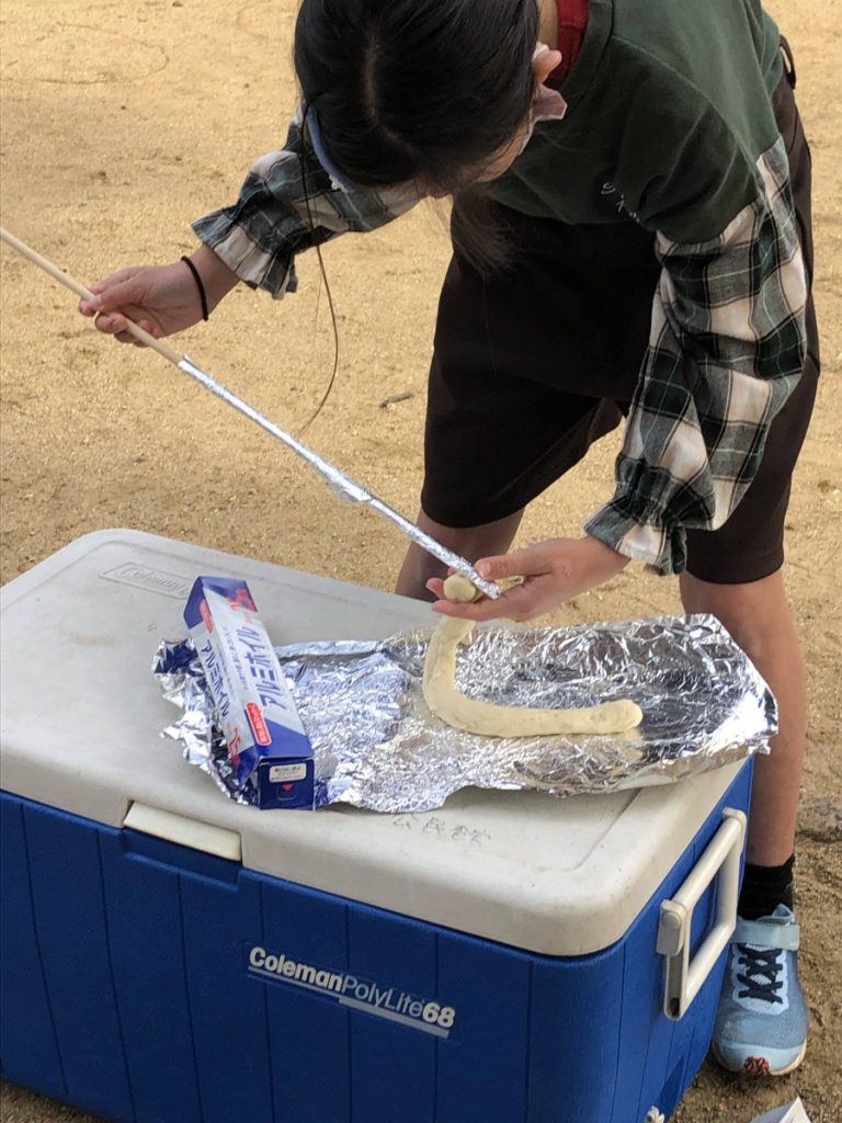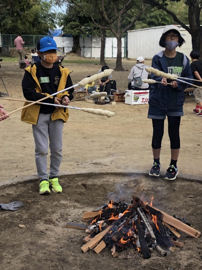 一つは、公民館の十八番♪”まきまきパン”の体験と焼き芋