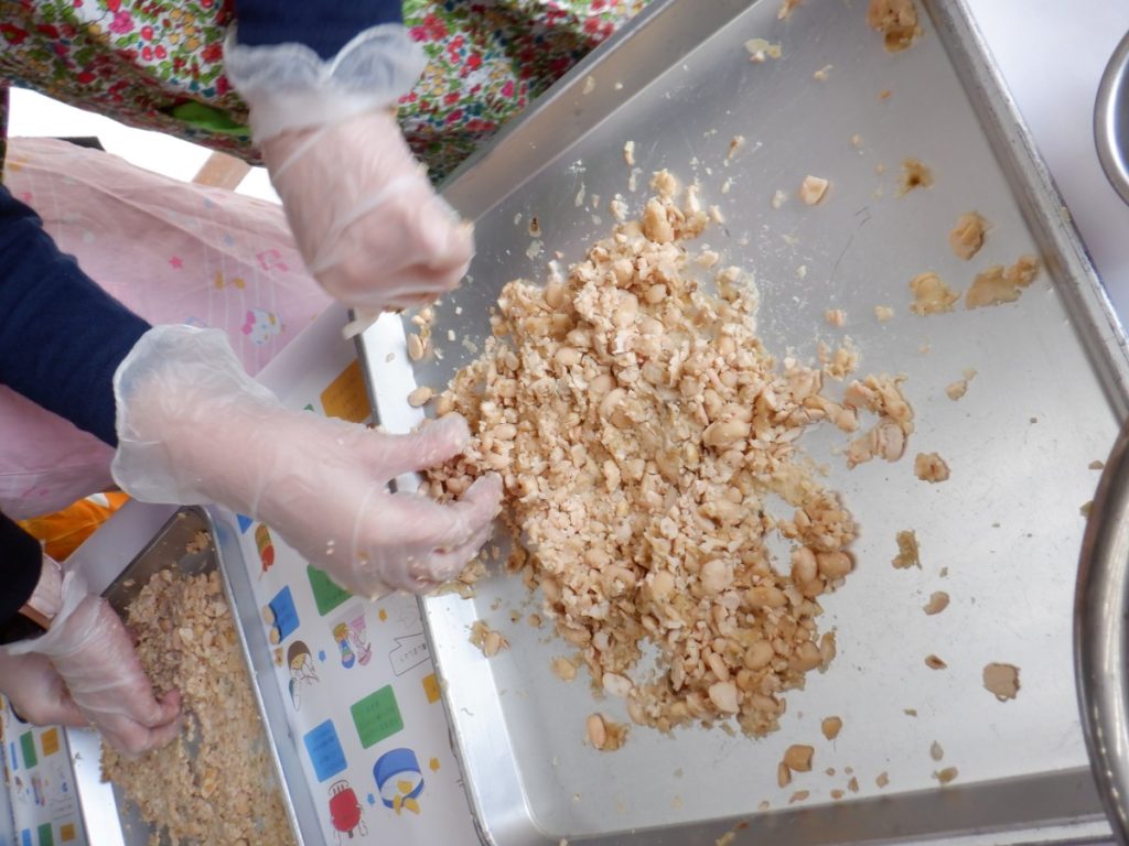 今回の時間をつくるために、前日から、社会教育グループの職員さんが、大豆をコトコト湯がく作業を何時間もしてくださいました。