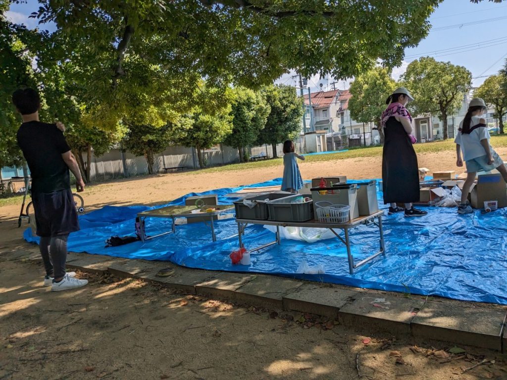 7月23日(日)快晴 池尻第8公園で、夏のプレーパークを開設しました。