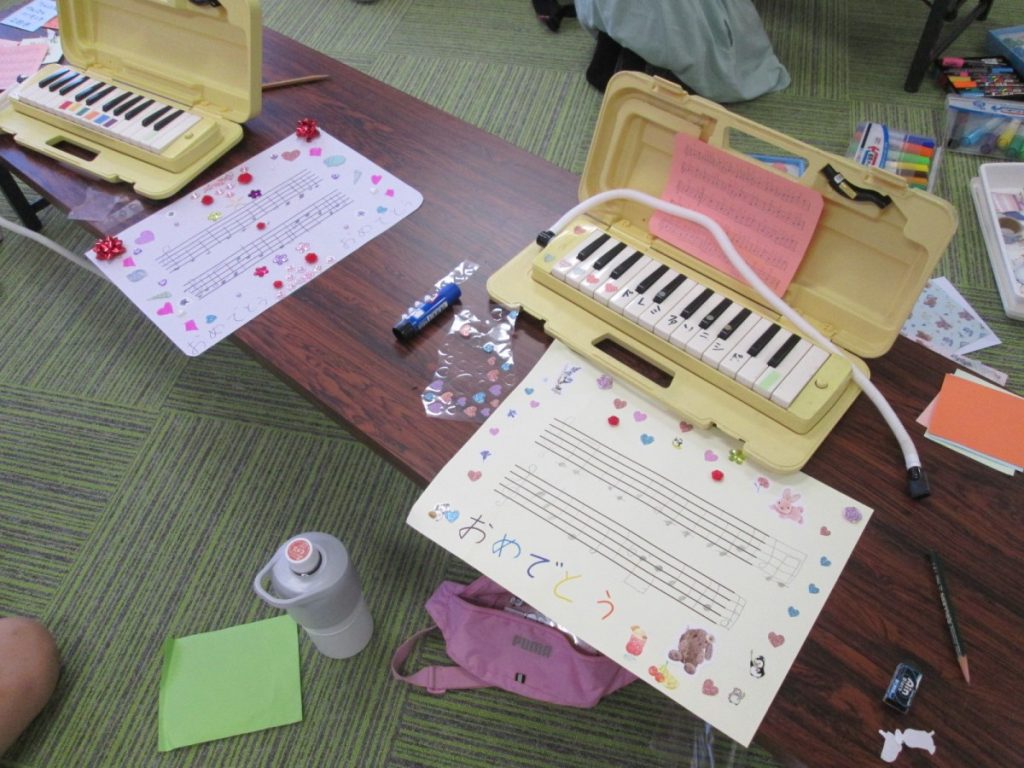 最後は「アイドル」と「HAPPY BIRTHDAY TO YOU」ピアノやエレクトーンや鍵盤ハーモニカでおうちの人の前で合奏しました!子どもたちもおうちの人もニコニコ笑顔な時間が過ごせました♪
