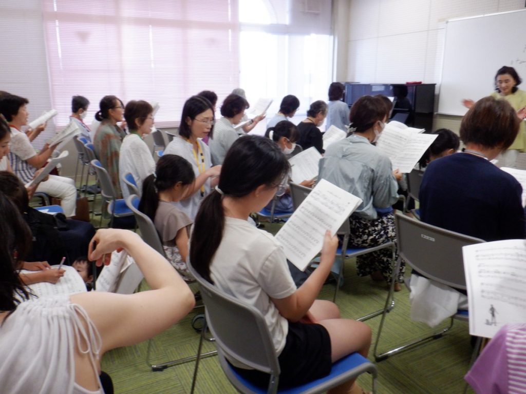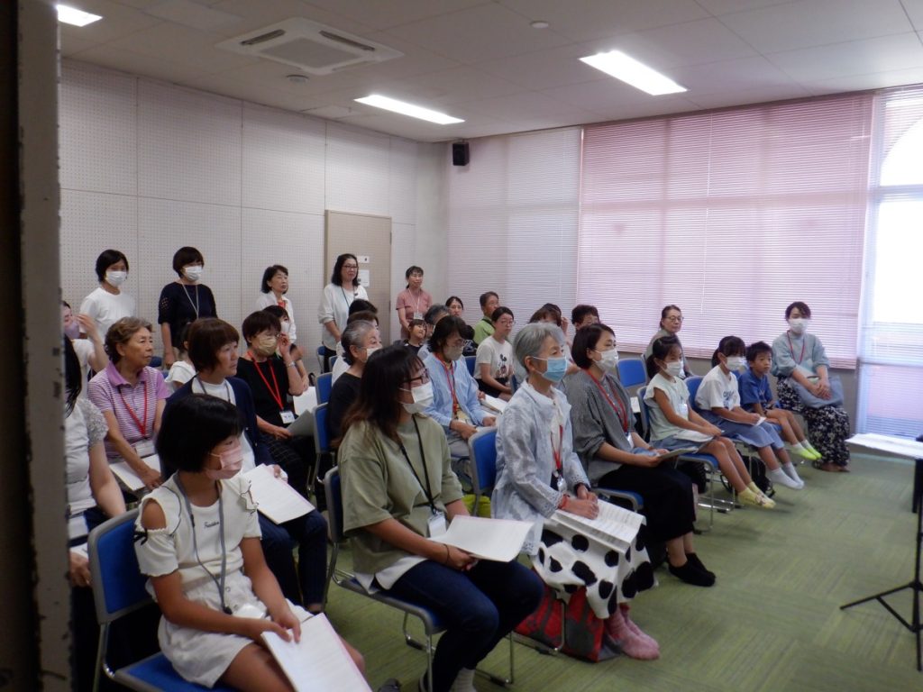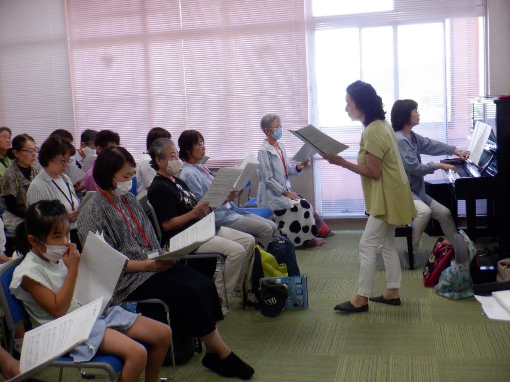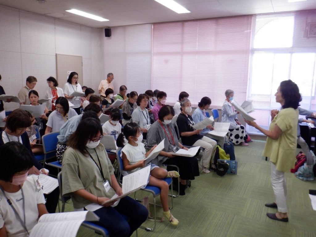 どんな感じになるか、どきどきの初回でしたが、1回目の指導担当の上田眞紀子さんの導き方のすばらしさと、そして、歌うことを楽しもうと集まって頂いた参加者のみなさんの関わり方の素敵さがあり、1回目とは思えない合唱を聴くことができました。
