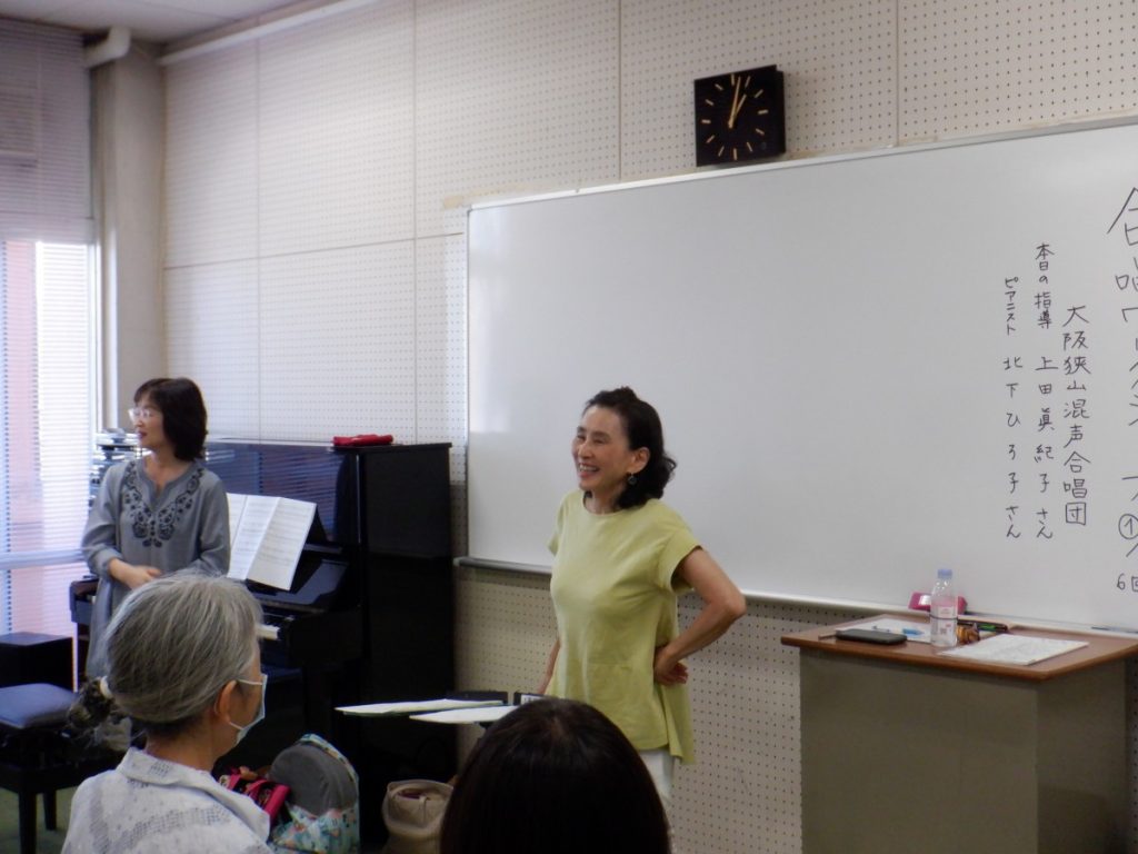 初回の担当団は、大阪狭山混声合唱団、指導は上田眞紀子さん、ピアノ担当は北下ひろ子さんでした。