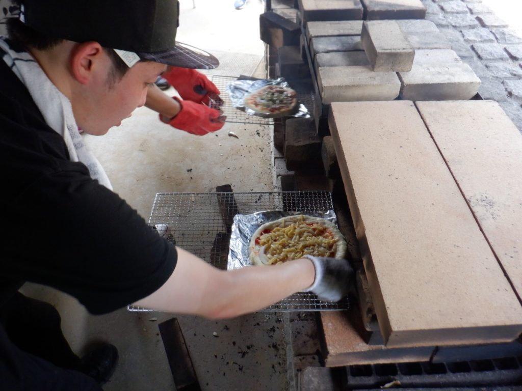 生地ができ上った後は、それぞれにトッピング。できあがった順にピザ窯で焼き、焼きあがったピザは一人で食べるのではなく、周りの人にシェアして、一緒に味わいながら食べました。