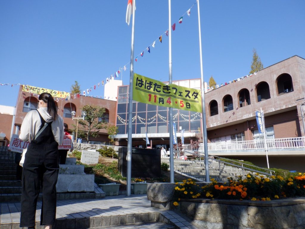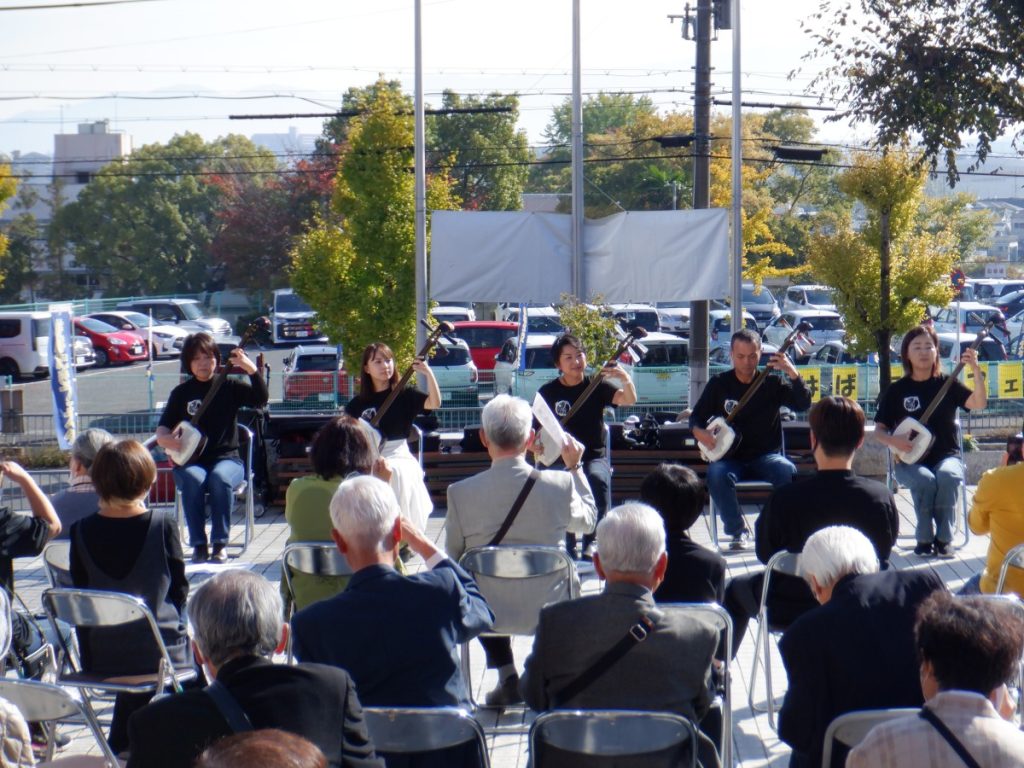 2023年11月5日(日) はばたきフェスタ第2日も晴れでした。オープニングは、津軽三味線「笑風会」の皆さんによる演奏。軽快かつ力強い三味線の音色が、第2日のスタートに弾みをつけてくれました。