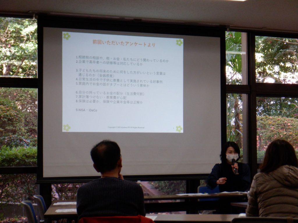 中高生年代の保護者の方を対象にした講座で講師は引き続き大岡美紀さん(キッズ・マネー・ステーション認定講師)です。