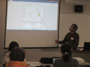 今年も、パソコン講座の定番、ワード講座を開催しました。毎回この講座では、絵葉書の文面と、簡単な配布物を作成しています。まあ、それが出来たら、個人で使うには十分だと思います。応用的な事を求める方もたまにおられますが、タブ、スタイル、差込、脚注その他色々ありますが、どれも、個人では殆ど使わないであろう機能(差込は使うかなぁ)なので、知っていると便利な機能なのですが、説明は公民館の域を出るかなぁ…と思っています。と、講座の内容とは直接関係ない話でしたが、皆さん結構頑張って受講していました。下の写真はそんな講座の一風景です。