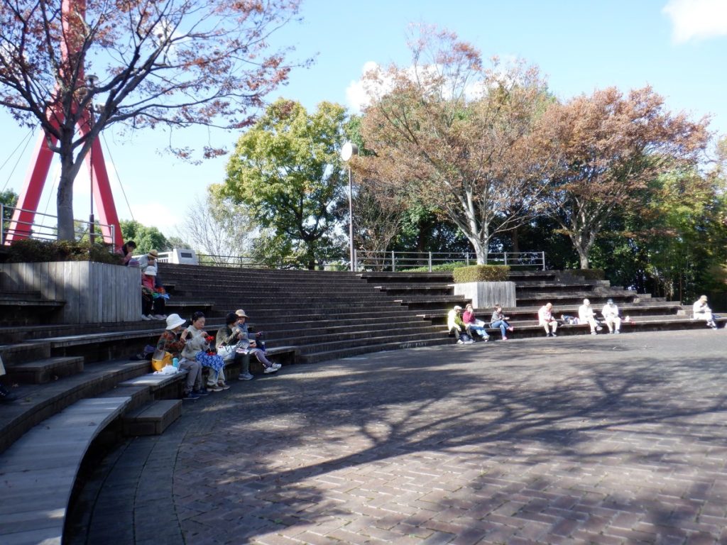 お昼ごはんは、そこからさらに北側にある市民ふれあいの里の緑の中で頂きました。