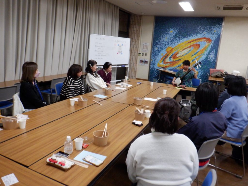 後半のお弁当を食べての交流会では、口野さんが津軽三味線を一曲披露して下さるというサプライズもあり、みんなで会話の弾む交流時間を過ごすことができました。