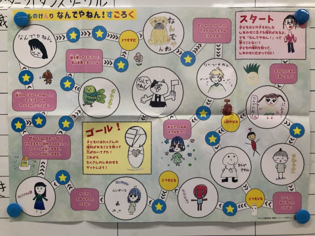 最初に体験してもらったのは、こどもの権利条約関西ネットワークの『こどものけんり なんでやねんすごろく』です。