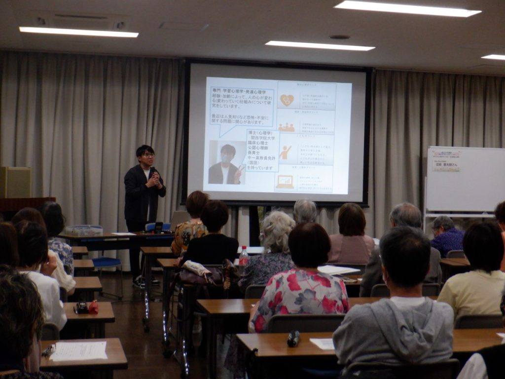 人生100年時代といわれますが、ただとにかく長生きしたいという人はあまりいないでしょう。体とこころが元気でなければ生きがいがありません。長い人生を元気で最後まで楽しめるように、役に立つのが心理学です。5人の先生方がそれぞれの論点で心理学の知識を教えて下さいました。受講された皆さんは、ほんとうに熱心で毎回、アンケ-トにたくさんのご意見を書いて下さいました。(5/11から6/8までの全5回実施)