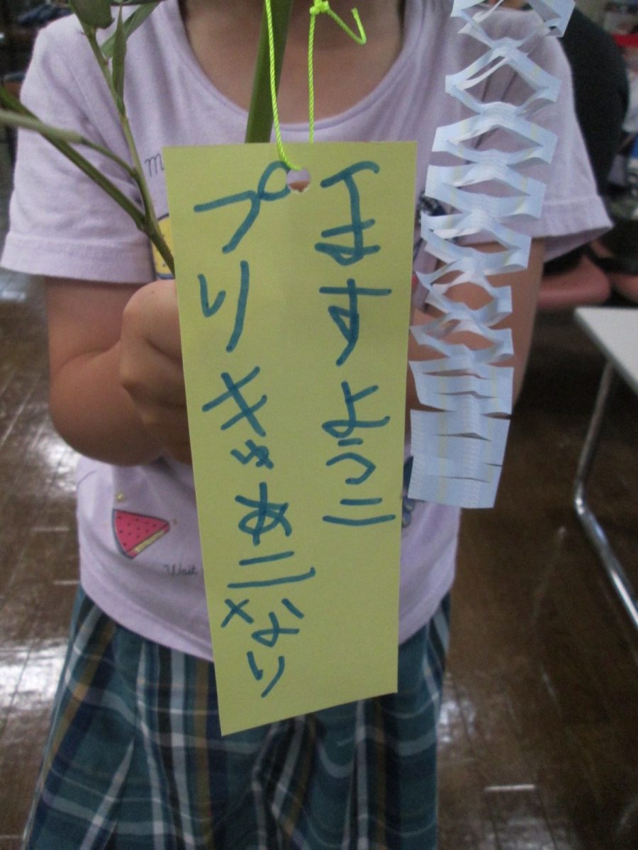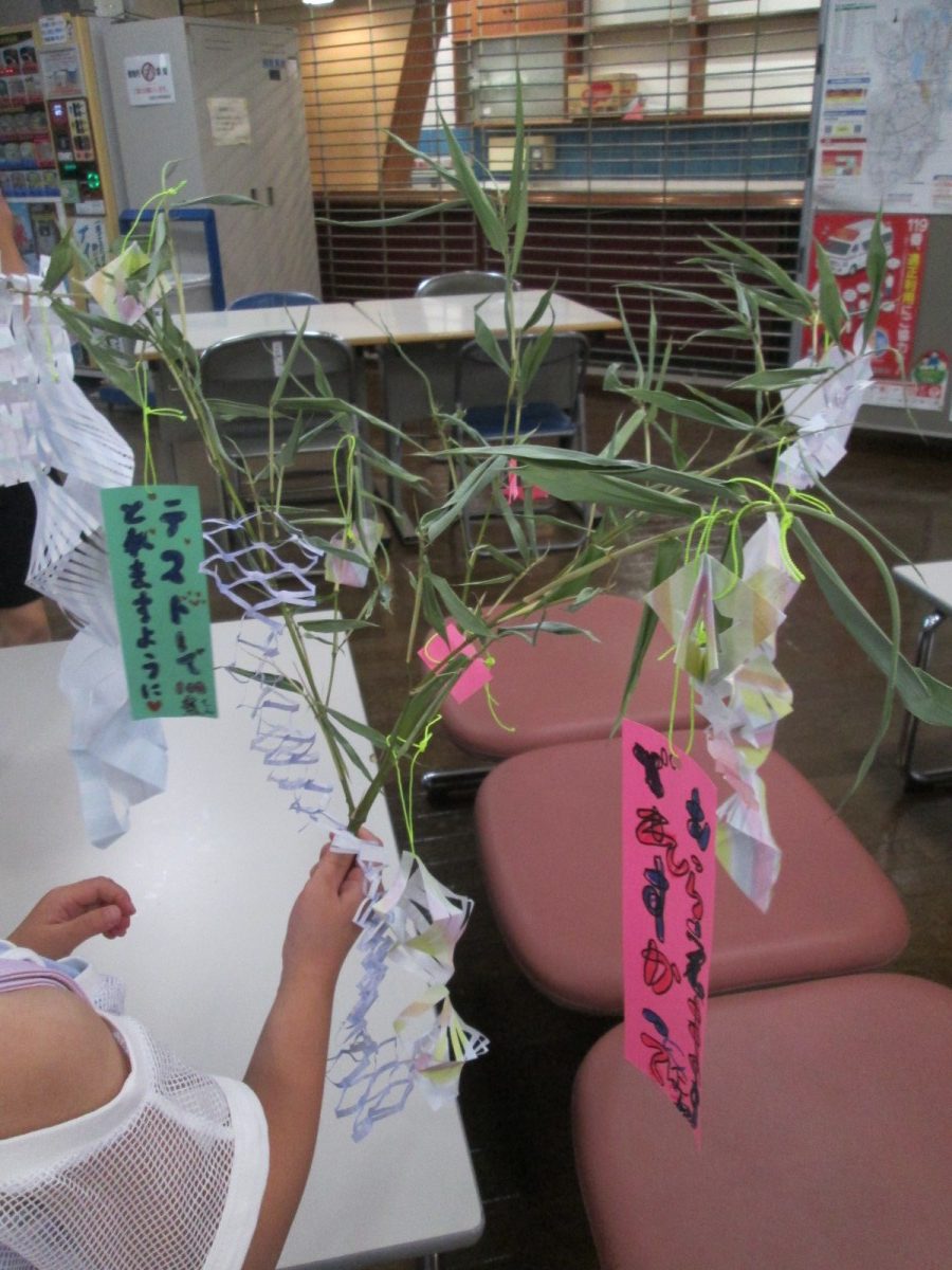 14:00からスタートの『わくわくデー』は、七夕(7月7日)が近いということで、市民ふれあいの里から笹を頂き、”七夕飾りづくり”をいつものスーパーボールすくいとミニ駄菓子屋さんに加えて実施しました。