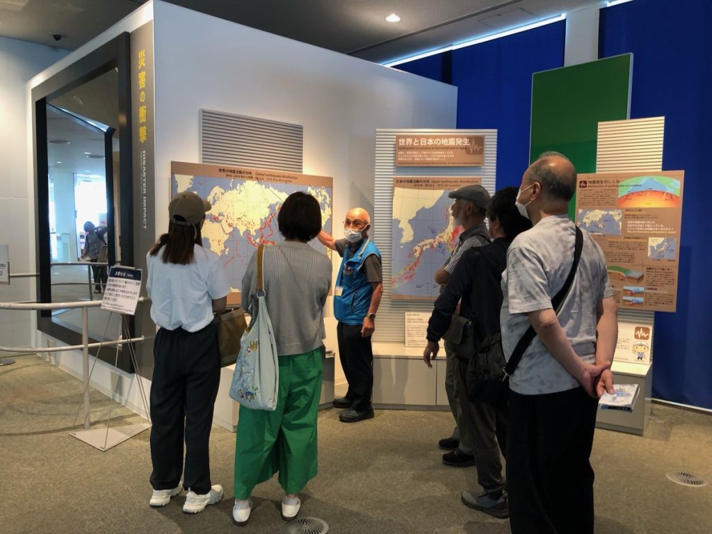 震災の記録のフロア、防災・減災体験フロア、東館のBOSAIサイエンスフィールドには、ガイドボランティアさんがいて、展示物について、色々と説明してくださいました。