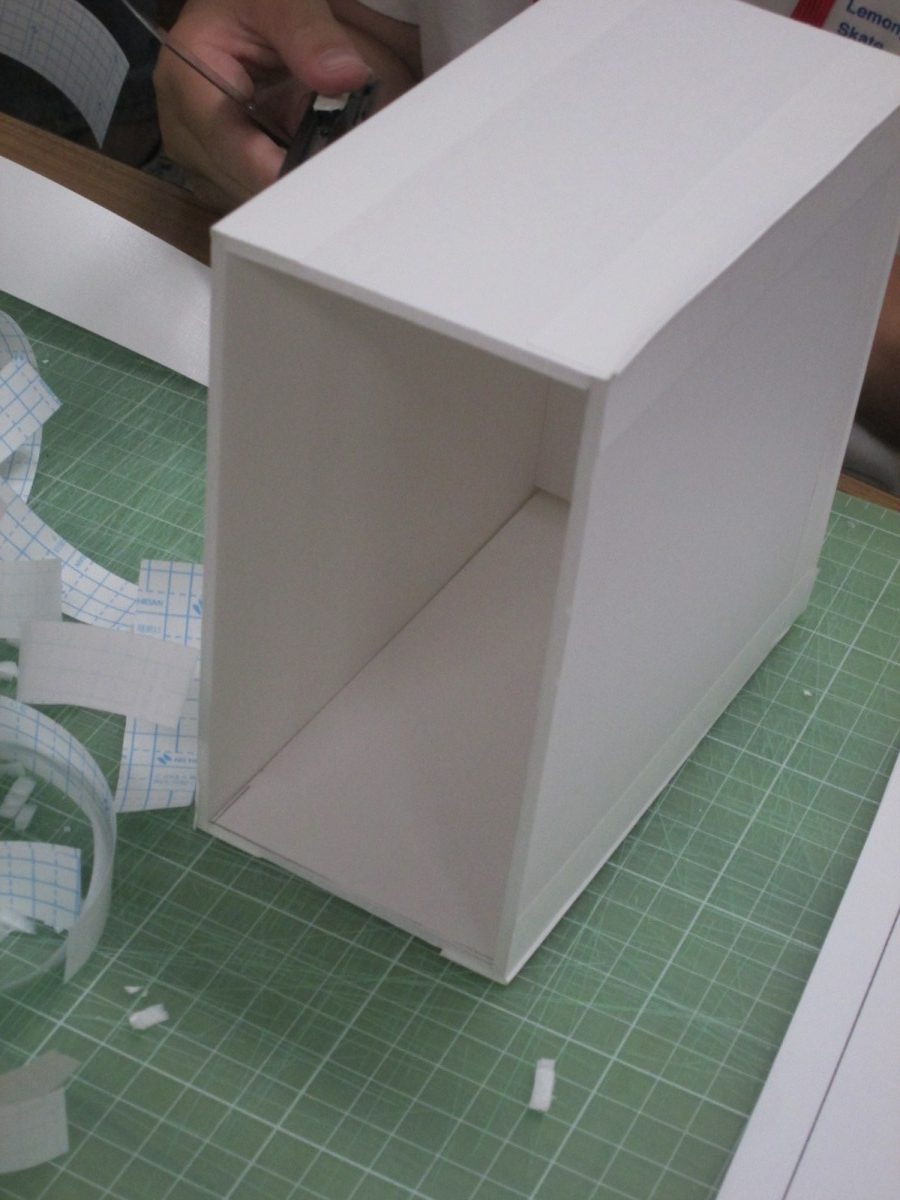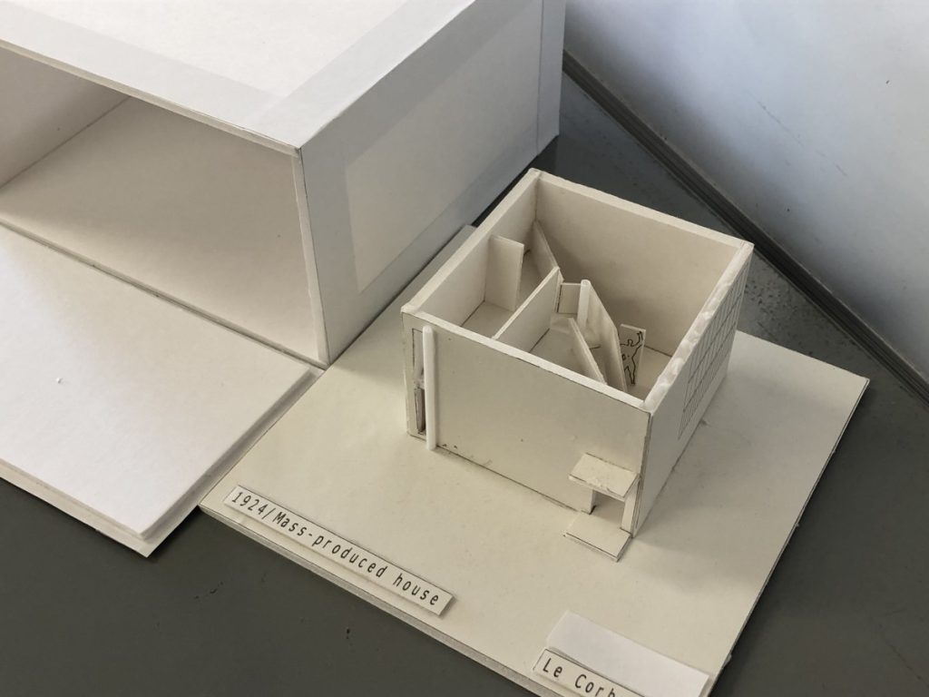 レベル①で、みんなが作成したのは、”Mass-produced house”です。収納する箱作りまで行いました。