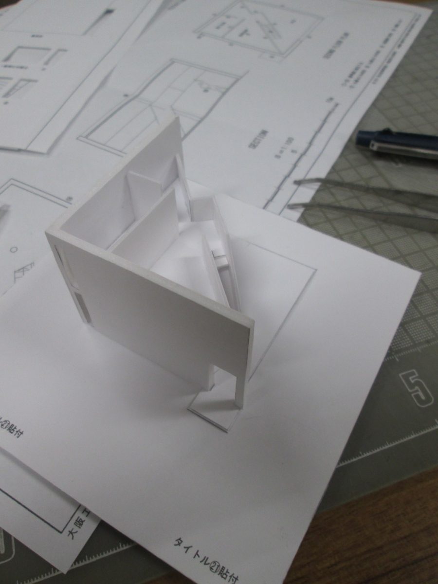 1㎜と3㎜のスチレンボードを丁寧に型どおりに切り、必要に応じて、1枚残しを施していきます。