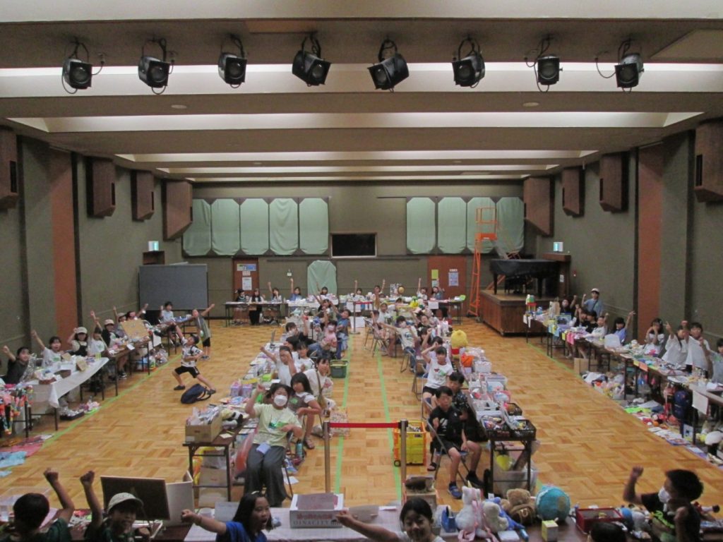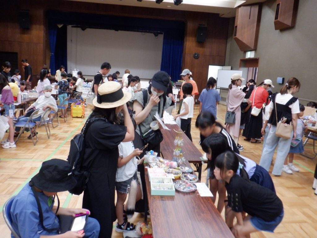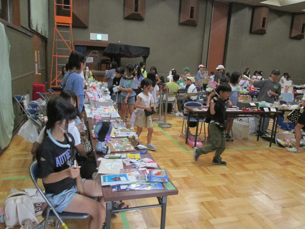 今日は夏休み学習会2024の一つとして実施している『こどもだけのキッズフリーマーケット』の実施日でした。たくさんの申込みを頂き、小学生のブースは、30組まで増やして実施しました。