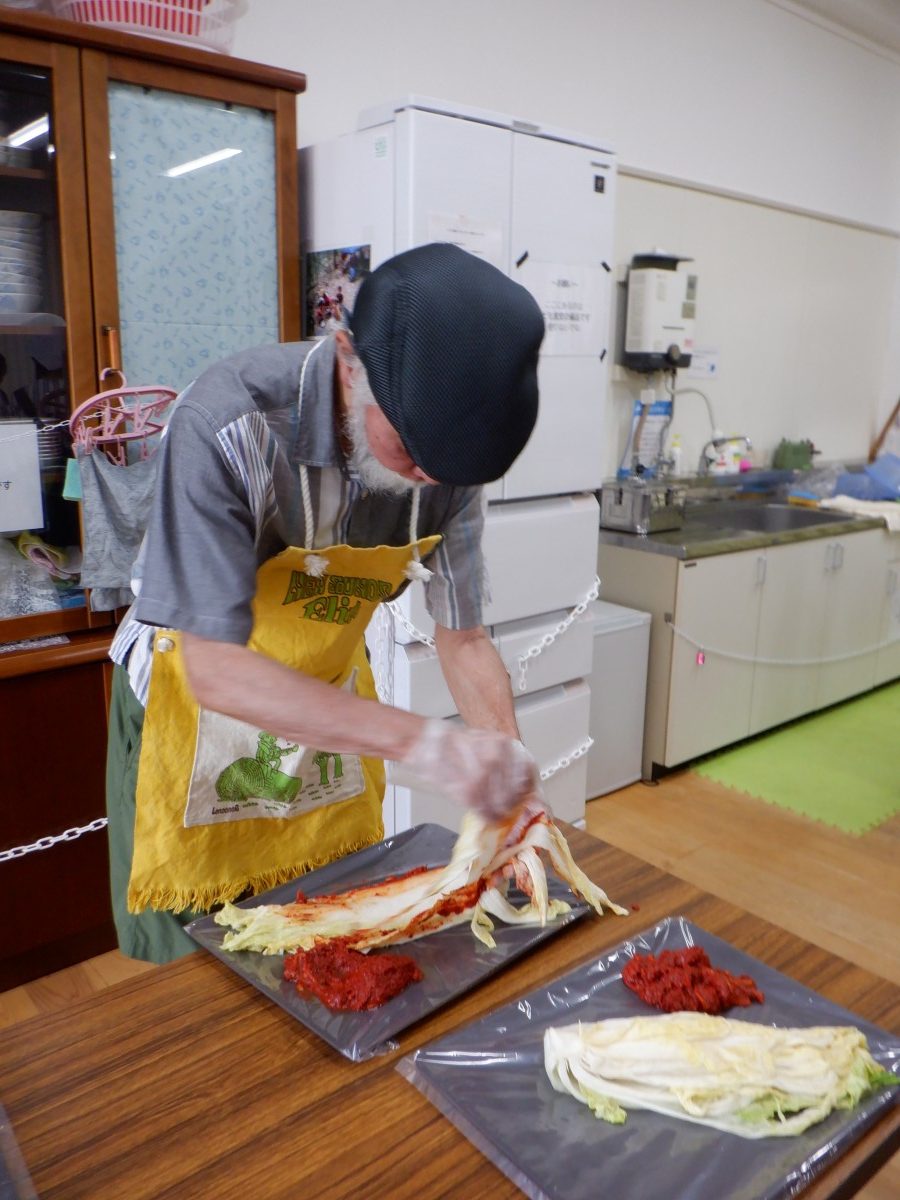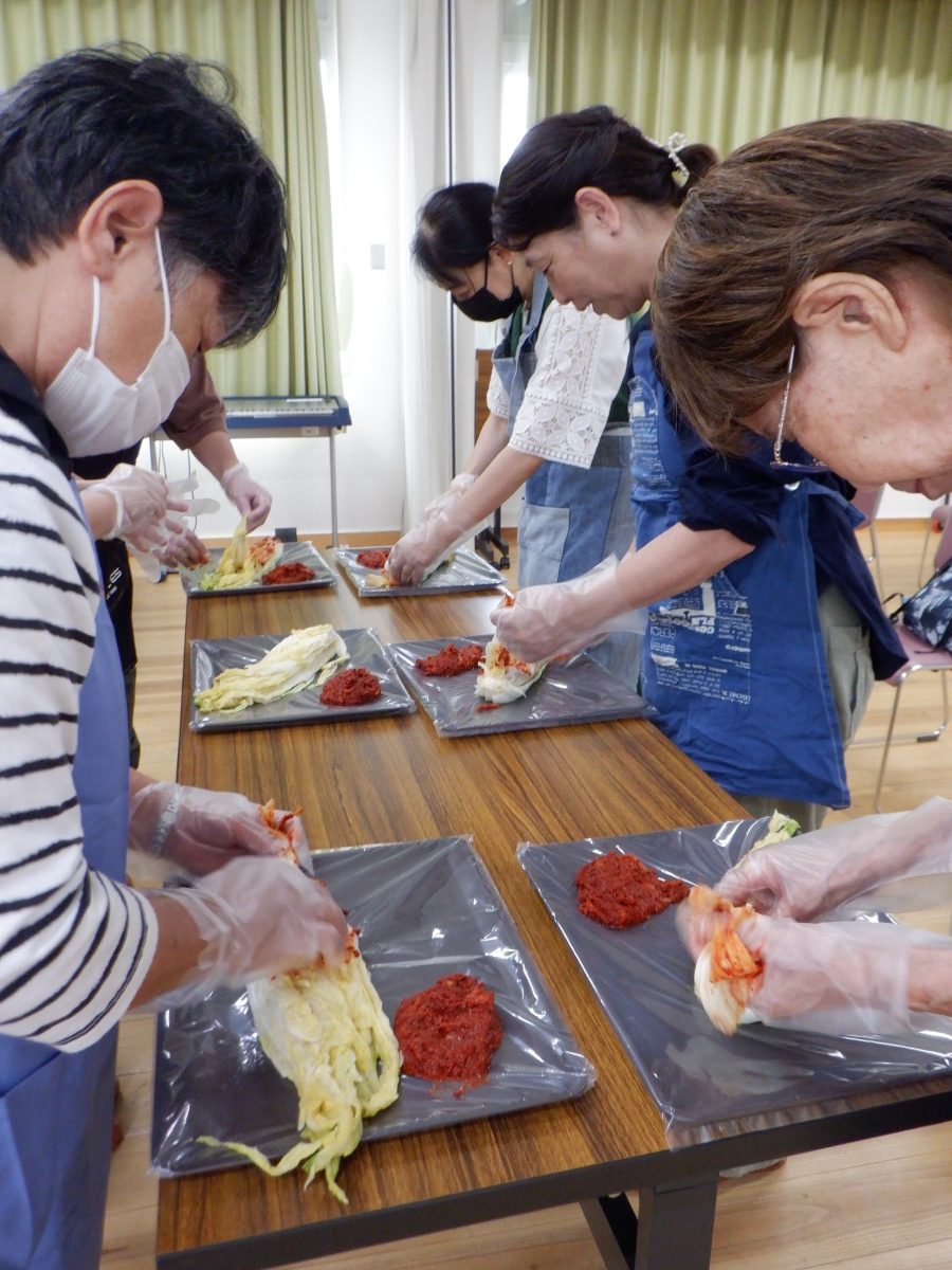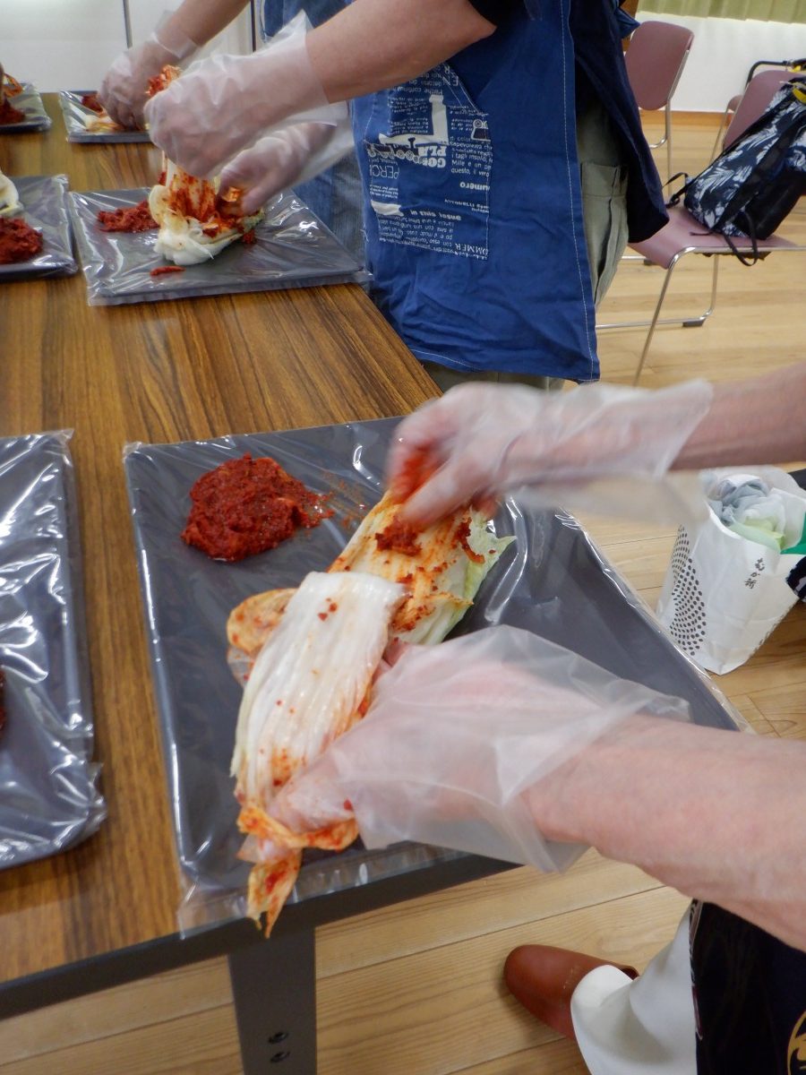 フィールドワークの後は、場所を『いくパテラス』に移して、キムチづくり体験をしました。