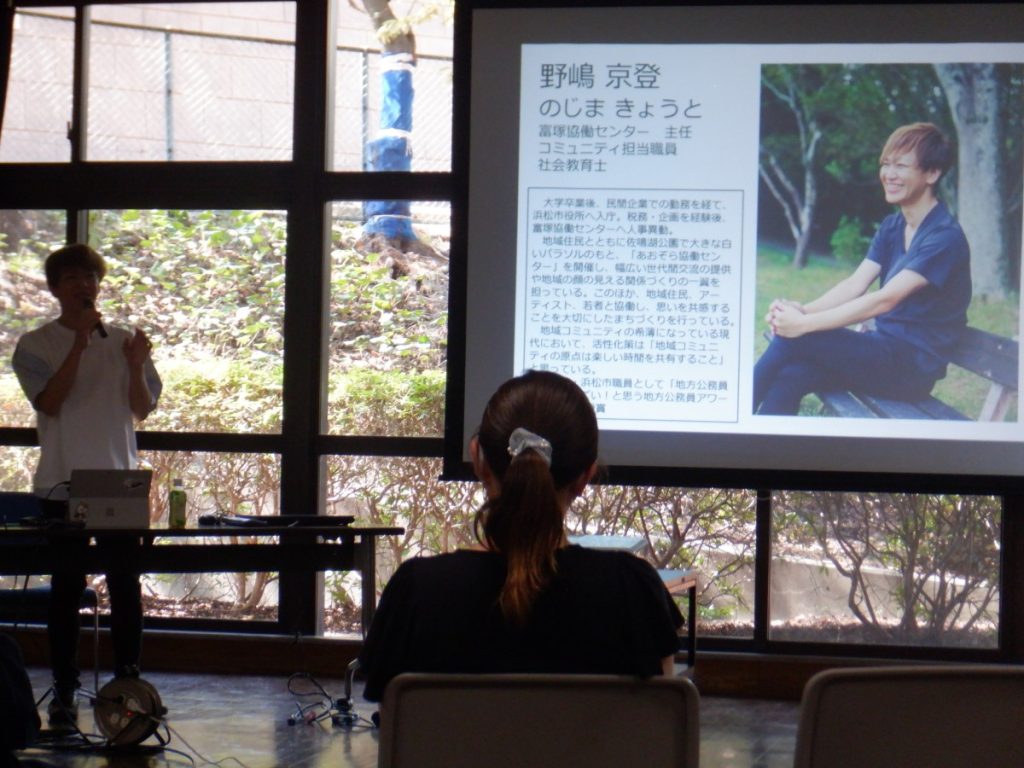野嶋さんは、『実践から学ぶ!みんな笑顔のまちづくり』というタイトルで、「あおぞら協働センター」「ごみゼロフェスタ」等など、数々の取り組みをご紹介してくださいました。