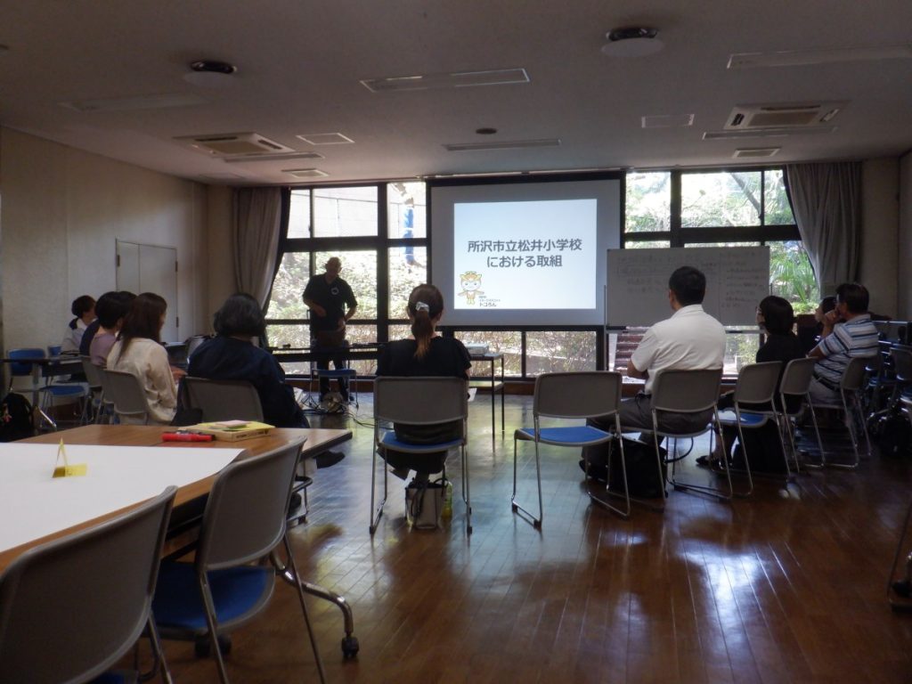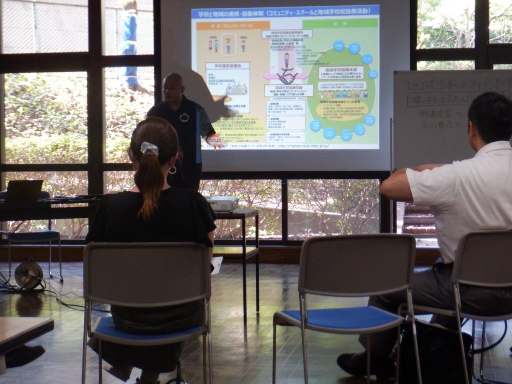 隣の芝生のお話をしてくださったのは、野嶋京登さん(浜松市富塚協働センター主任・社会教育士)と市川重彦さん(所沢市立松井小学校校長・社会教育士)のお2人です。