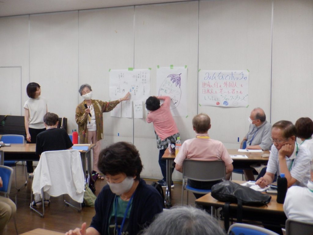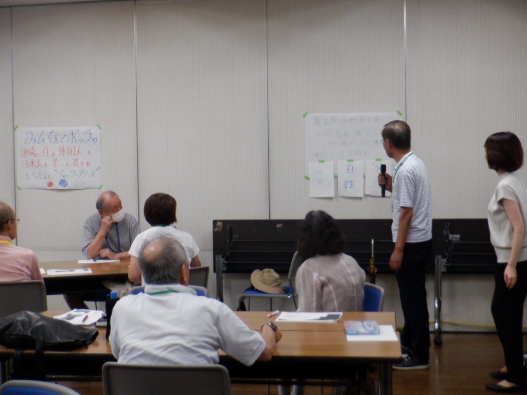 それぞれの説明を聞いた後、グループのメンバー分組み合わせて、公民館でやってみたいことを一つみんなで考えてみるというワークでした。
