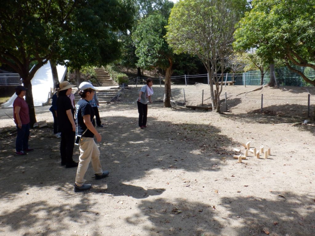 そして、できあがった作品を乾かしている時間を使って、モルックを体験してもらいました。