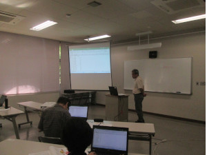 良く話題になるのが、何処までが基礎か、と言う所なのですが、要はスプレッドシートの入門編です。公民館では余り難しい事は出来ないので、四則演算と簡単な関数、グラフ、データベース機能、この位使えれば、通常は御の字だと思うのですがねぇ。一度商工会で、富士通の緑本の応用編を何度か説明した事が有りましたが、何時も途中で終わりました…つまり、通常は使わない、使えない機能だという事ですかねぇ。ピボットテーブルや統合なんかは便利なのですが…、って私も使いませんねぇ。つまり、普通はこの講座位の知識で十分過ぎるという事だと思います。そんな滅多に使わない知識は忘れて行くだろうし…下の写真は講座風景です。