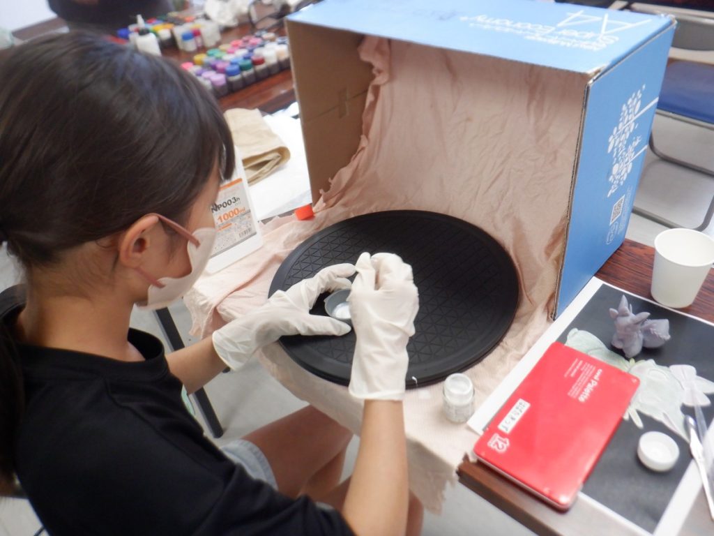 はじめてのエアブラシ体験講座実施しました。少しむずかしかったという声も多かったですが皆さん真剣にエアブラシを使って人形に色を塗ってくれました。