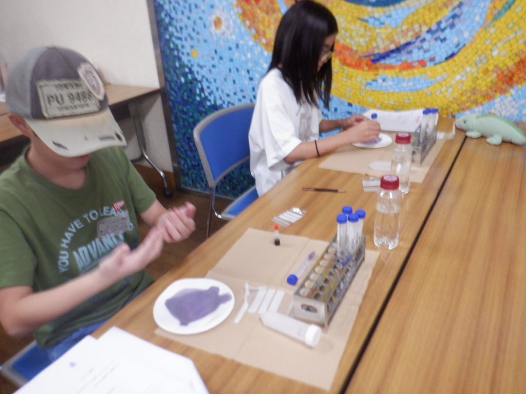 コメ汁を使った化学実験の実際の化学反応を観察しました。