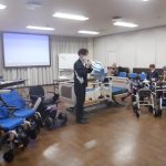 講座の後半では、実際に介護用品に触れてみました。レンタルできるもの、購入できるもの、同じ用途でも屋内で使用するほうがいいものと屋外で使用するほうがいいもの、たくさんありました。スタッフさんに説明してもらい なるほどーと思うことが多かったです。